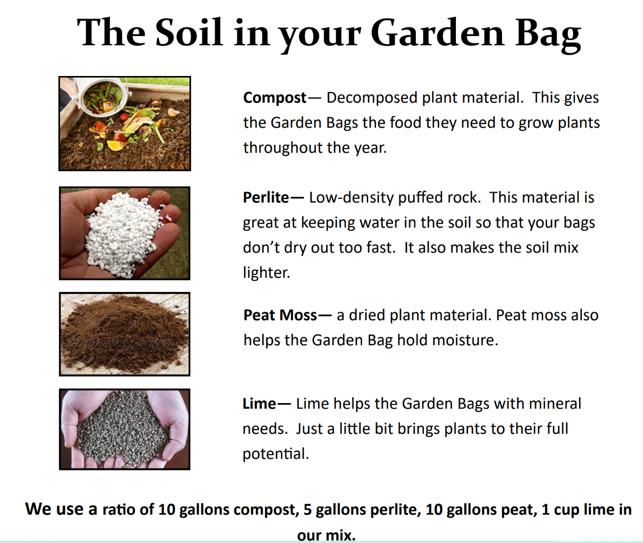 • This guide does not describe all of the different vegetables that could be grown using the bags,